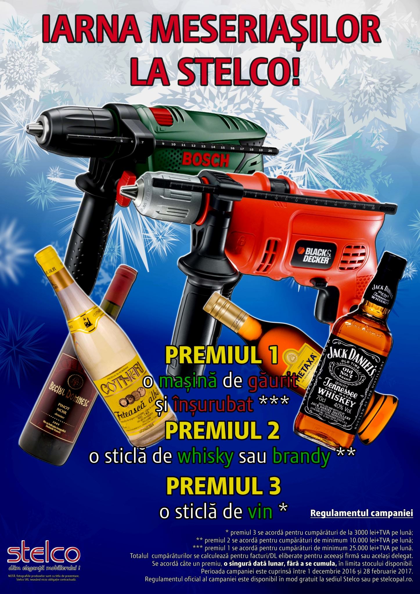 Ca de fiecare dată clienții Stelco sunt răsplătiți. Și iarna aceasta avem premii de nerefuzat: sticle de VIN, WHISKY sau BRANDY de cea mai bună calitate,